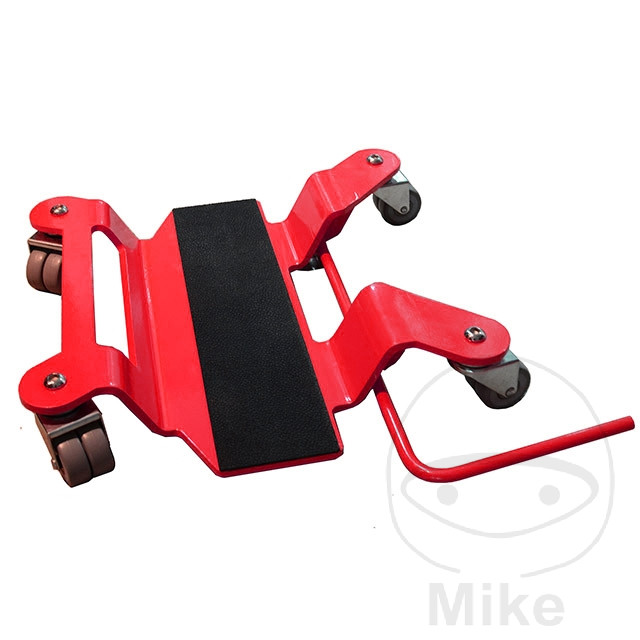– Grâce aux quatre roulettes doubles orientables de tous les côtés (dont deux avec frein), la moto peut désormais être facilement tournée dans l’atelier ou le garage dans les espaces les plus étroits, sans exercer de force, ou garée en travers devant une voiture dans un garage étroit.