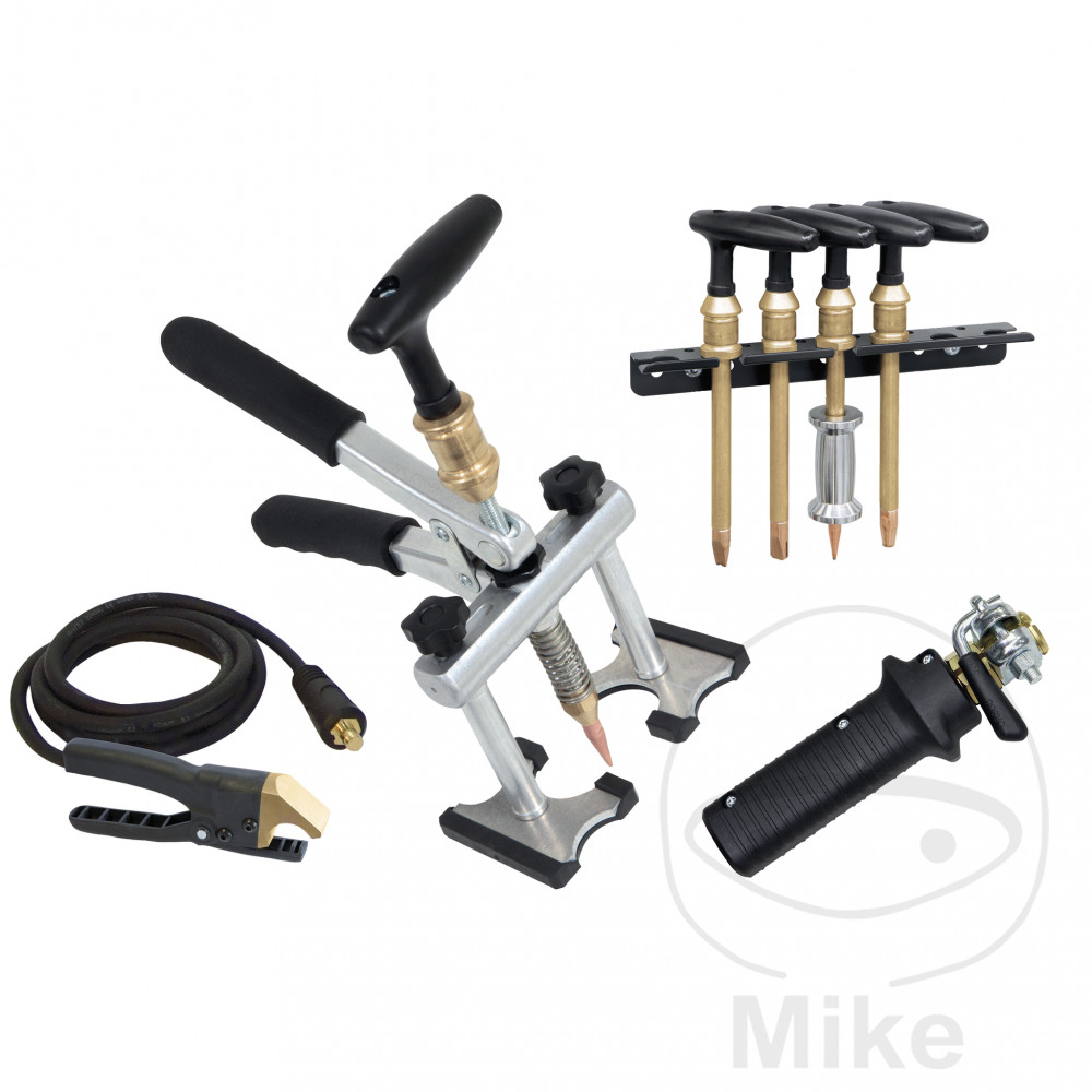 Amorçage automatique par contact pour les tôles d’acierCommande par microprocesseurFacilité d’utilisation grâce à 77 préréglages d’usineAvec temps et puissance automatiques ainsi qu’optimisation du courant de soudagePistolet de soudage multifonctions : Marteau coulissant, soudage de goujons, goupilles en T, serrage de la tôle et chauffage de la tôleLivré avec marteau coulissant, pont-levis, jeu de pièces d’usure et diverses électrodes