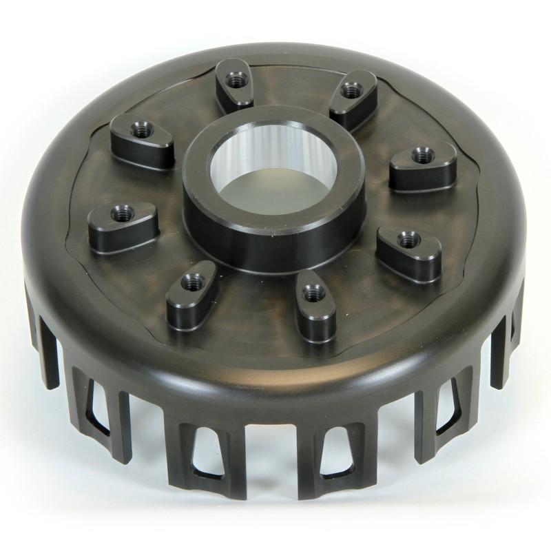 Toutes les cloches d’embrayage sont anodisées dur pour produire une surface ultra résistante à l’abrasion et assurer une longue durée de vie à l’embrayage grâce à l’élimination de l’usure sur les côtés des languettes du panier d’embrayage.