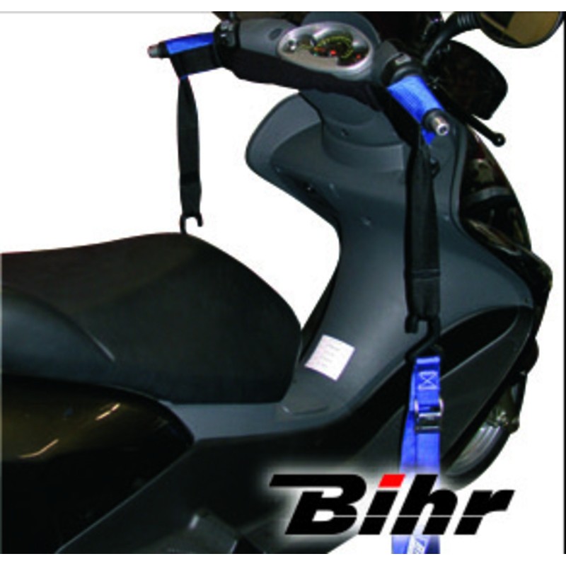 Permettent de stabiliser votre moto en toute sécurité, sur remorques ou tables élévatrices. Deux manchons pour poignée maintiennent parfaitement votre guidon.