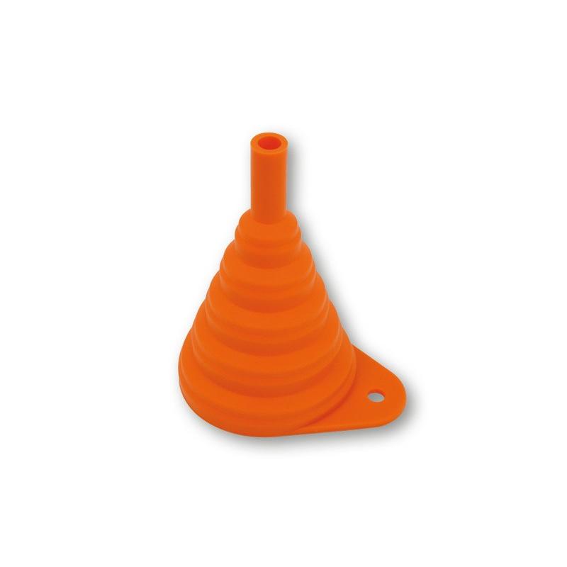 Cet entonnoir peut être inséré pas à pas pour gagner de la place lors du rangement. L’entonnoir est en silicone et peut donc facilement être utilisé sur des ouvertures de remplissage disposées de manière inaccessible. Très bonne qualité, stable. Pour l’accrochage au mur de l’atelier, un œillet correspondant est disponible.