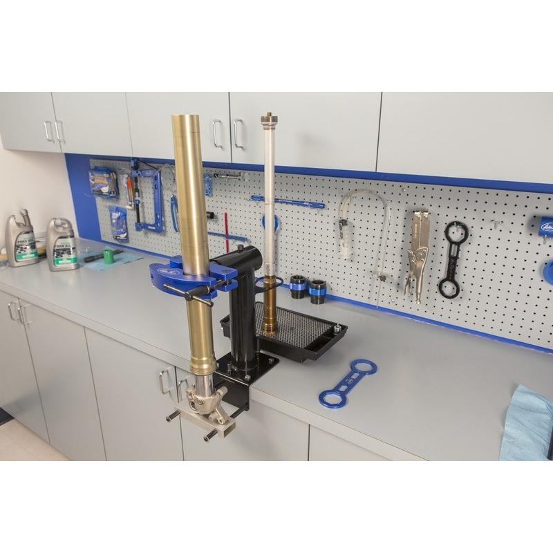 - Maintient la fourche ou l’amortisseur en place pendant que vous changez l’huile, les joints…