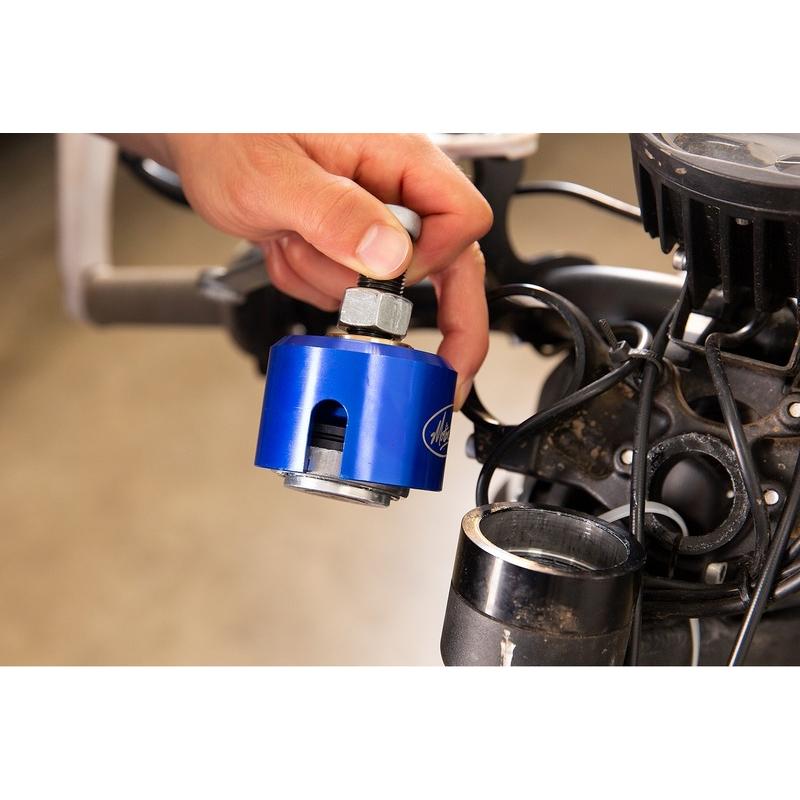 • Conçu pour retirer la bague de roulement supérieure de la tête de direction sans utiliser de marteau ni de poinçon.