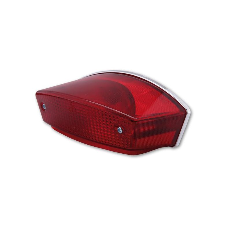 Feu arrière universel SHIN YO avec fonction de feu de stop, 12 Volt 21/5 Watt, dimensions : Plaque arrière 65 x 165 mm, avant 50 x 145 mm, avec éclairage de plaque d’immatriculation