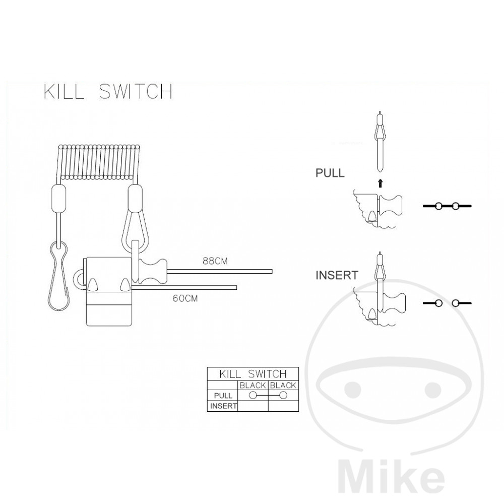 – Interrupteur ouvert avec clip inséré- Interrupteur fermé avec clip retiré- Pour le montage sur le guidon (collier de serrage de 22 mm)- Anti-éclaboussures