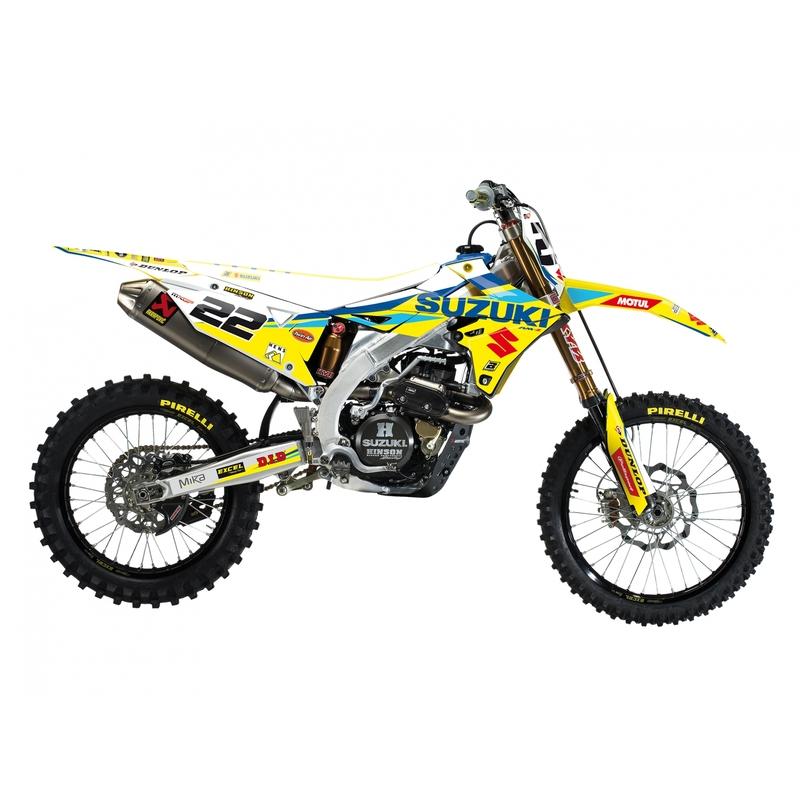 - Kit déco complet : ouïes de radiateur, garde-boue avant/arrière, protections de fourche et stickers de bras oscillant