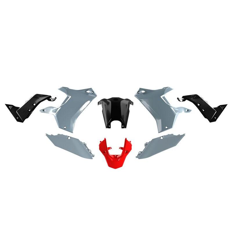 Kit plastique redessiné en Polypropylène flexible, anti-rayures ainsi que brillant et respectueux de l’environnement donnera à cette moto d’aventure emblématique :