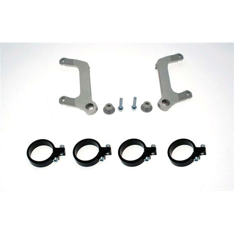 The bracket is milled from solid aluminium. The holding clamps are available in different fork diameters for common naked bikes. If necessary, the fork width must be adjusted by fittingsockets can be balanced. The distance between the stand pipe clamps on the fork leg is 115 mm. When planning, please note that the headlight is held very close to the fork for optical reasonsis. Depending on the vehicle, this can lead to a conflict with the original instruments/holders and the ignition lock. Select the desired colour and size.