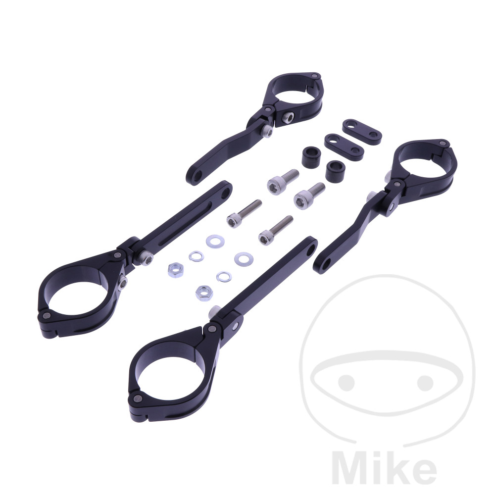 En déplaçant les supports sur la fourche, il est possible de rapprocher ou d’éloigner la lampe de la moto.