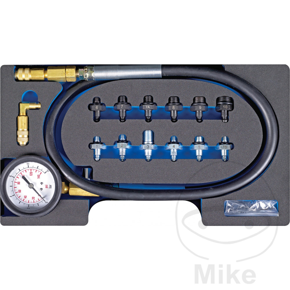 – Manomètre avec échelle de 0 – 10 Bar (0 – 145 psi) (tolérance +/-5%) et tuyau flexible, longueur 1150 mm