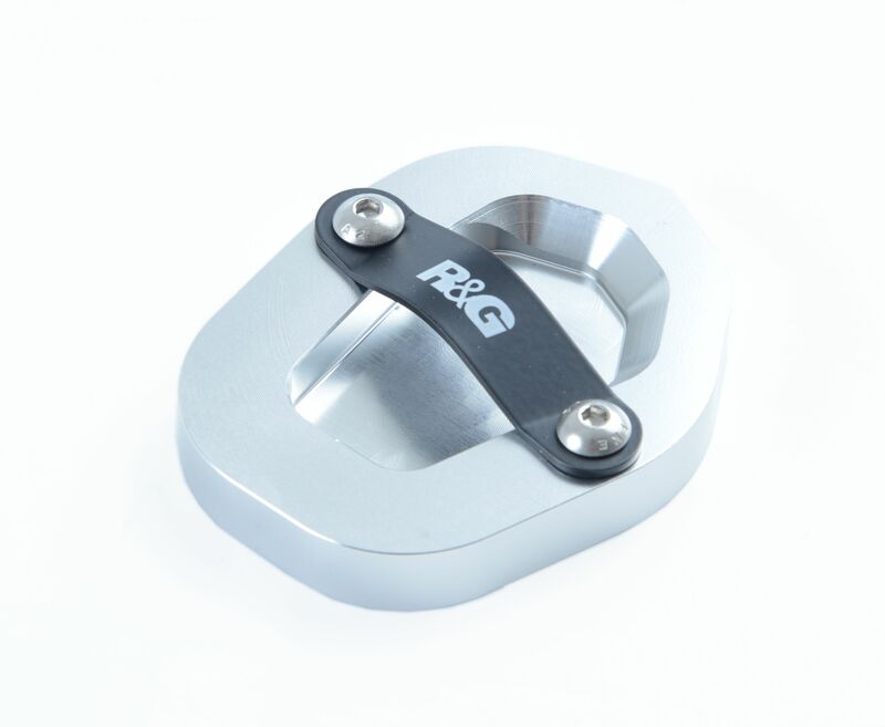 Les patins de béquille R&G Racing se vissent sur votre béquille d’origine et doublent la surface d’appui, pour éviter l’enfoncement dans le sol. Malgré sa taille plus importante, la garde au sol et la ligne de chaine ne sont pas affectées dans des conditions normales de conduite.