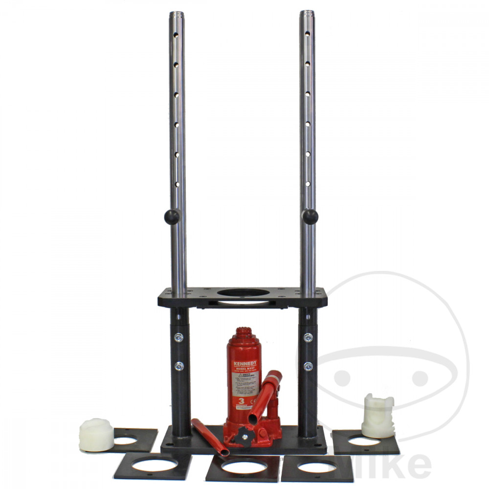 Presse à ressort d’YSS spécialement adaptée à toutes les jambes de suspension de moto et de scooter.