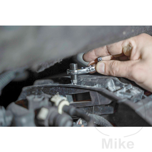 – La clé à cliquet est parfaite pour des mouvements manuels rapides et simples dans des espaces restreints.