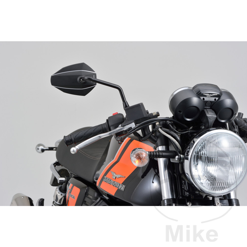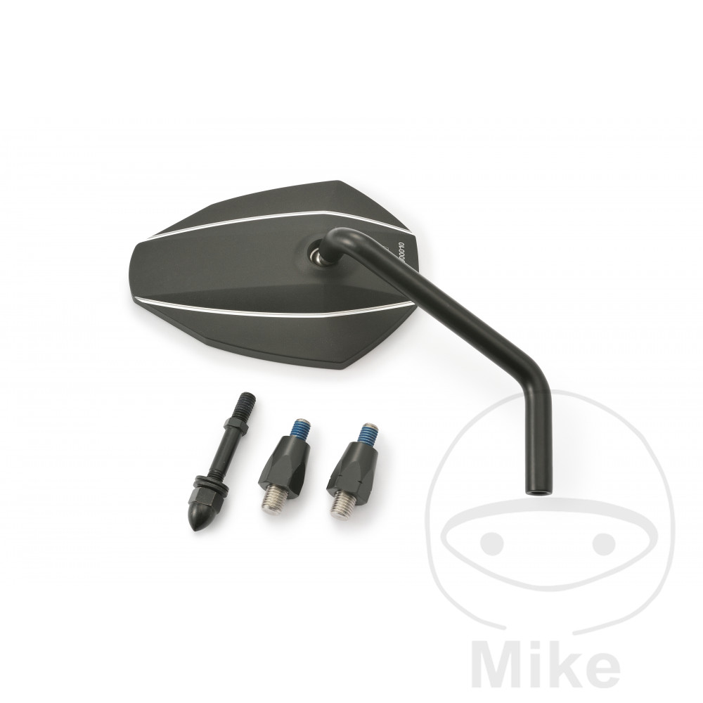 Vis de montage incluses : 1x M10 filetage à droite, 1x UNF 5/16 – 24 filetage [et 1x M10 filetage à gauche (en plus pour le rétroviseur droit)].
