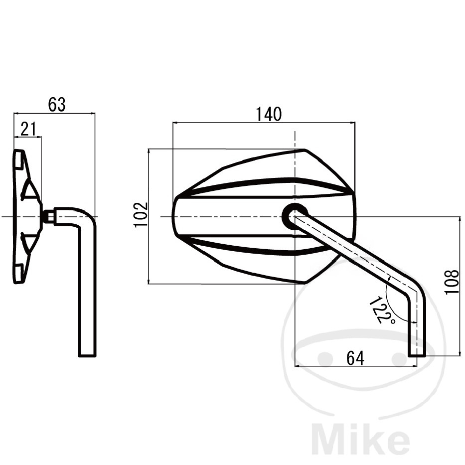 - Largeur de la tête du miroir: 140 mm