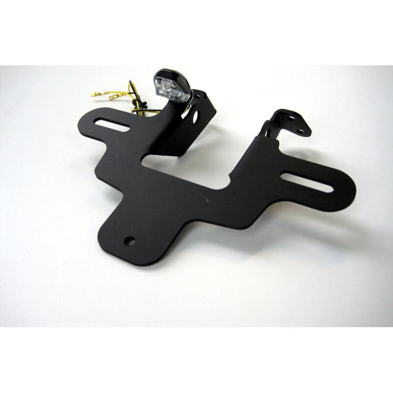 Selon la construction de la moto, le support de plaque peut être livré au choix avec un feu de plaque ou avec un feu arrière à LED et un éclairage de plaque intégré.