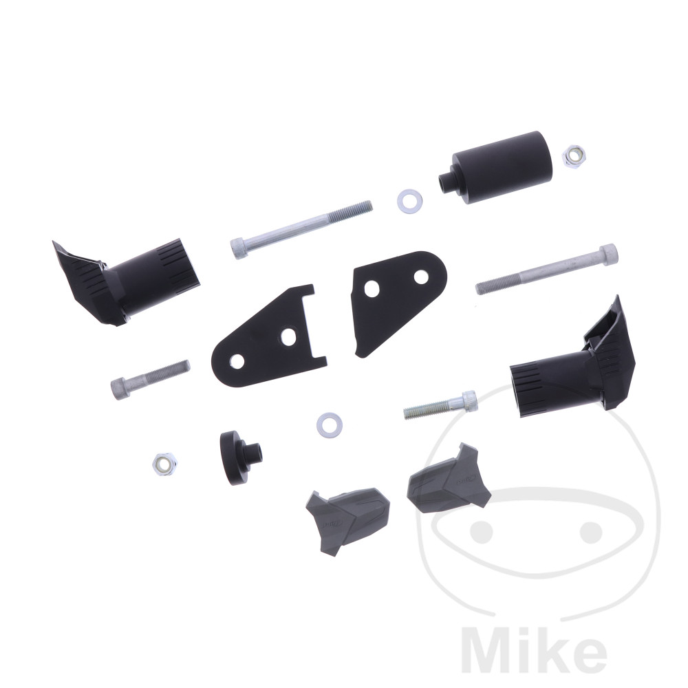 Chaque jeu de crash pads est adapté individuellement au modèle de moto concerné. Les dimensions sont conçues de manière à ce que les coussinets ne touchent qu’après les repose-pieds, soient plus étroits que le guidon, protègent le cadre, le réservoir et les pièces du carénage de la moto, ainsi que le genou du conducteur.