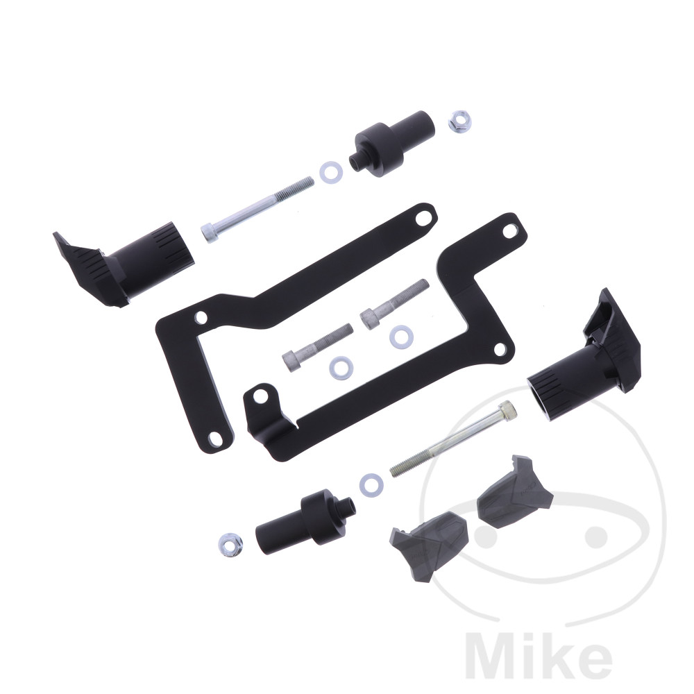 Chaque jeu de crash pads est adapté individuellement au modèle de moto concerné. Les dimensions sont conçues de manière à ce que les coussinets ne touchent qu’après les repose-pieds, soient plus étroits que le guidon, protègent le cadre, le réservoir et les pièces du carénage de la moto, ainsi que le genou du conducteur.