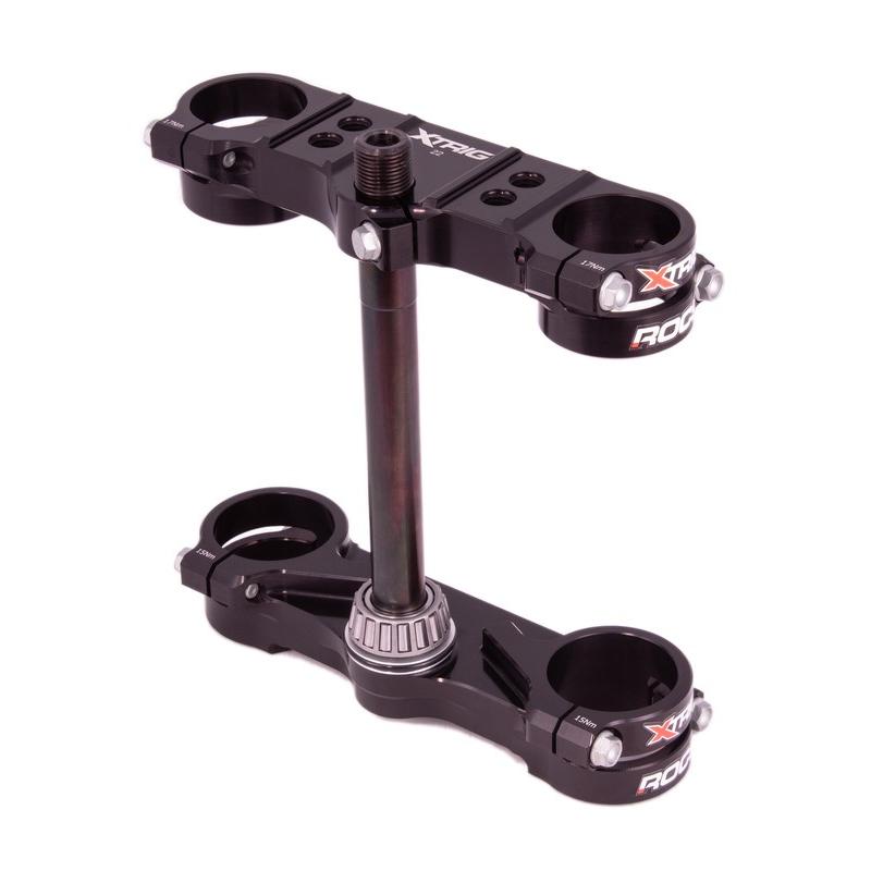 Avec la gamme ROCS, XTRIG a développé un nouveau système assurant une stabilité du train avant encore plus élevée. L’opposition des fixations de tés de fourche optimise le fonctionnement de la fourche et repartie les contraintes sur le tube de fourche. La séparation des points de fixation améliore le feeling et le contrôle de la moto.